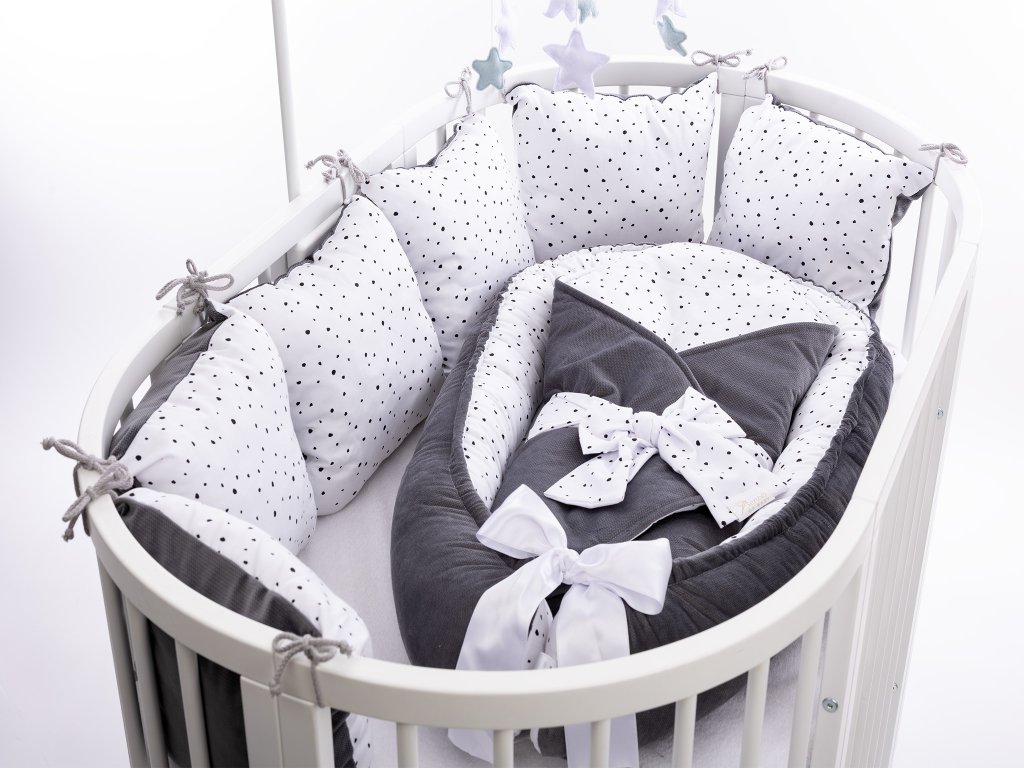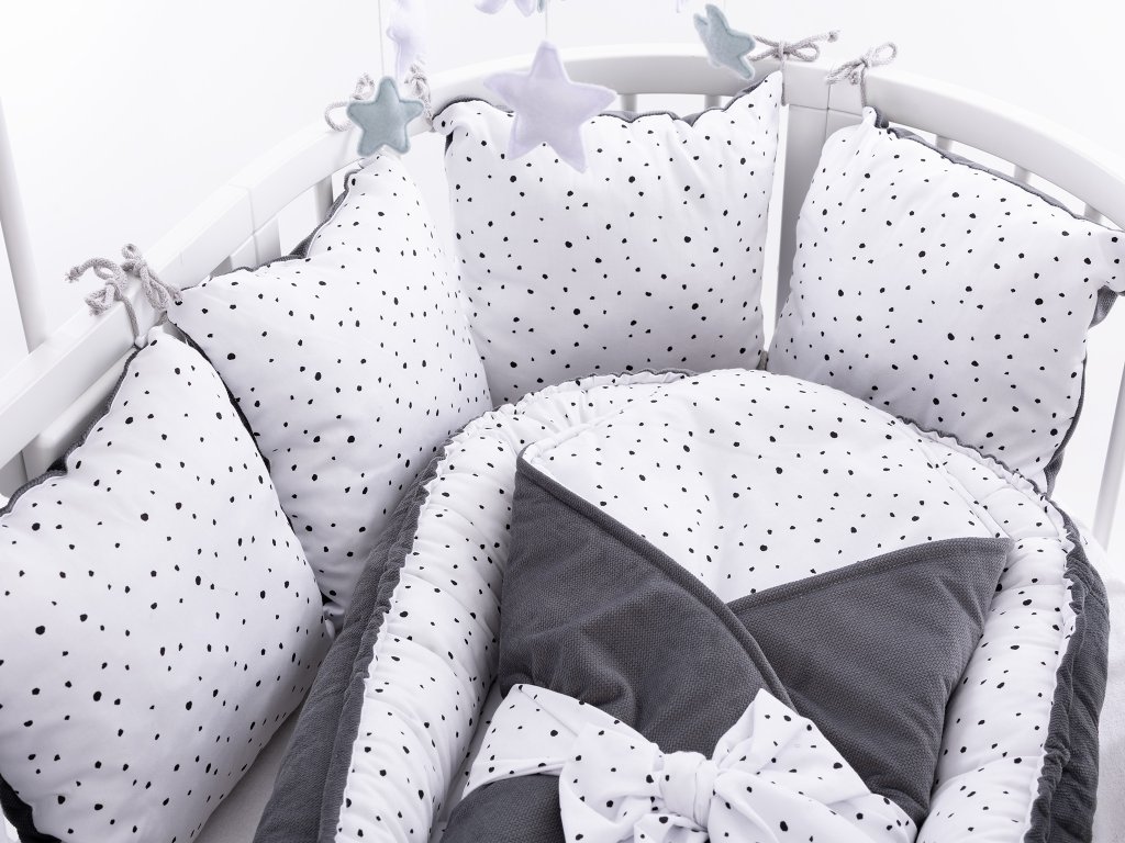 Set do postýlky Mimoušek 3-dílný černé tečky šedý velvet