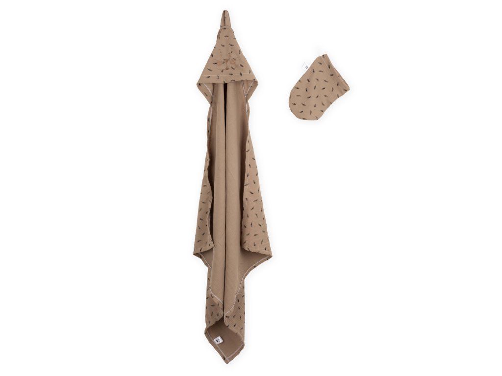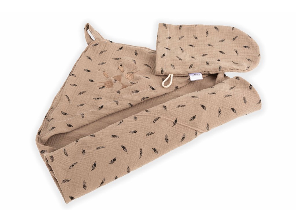 Dětská osuška s kapucí a žíněnkou Béžová peříčka – set