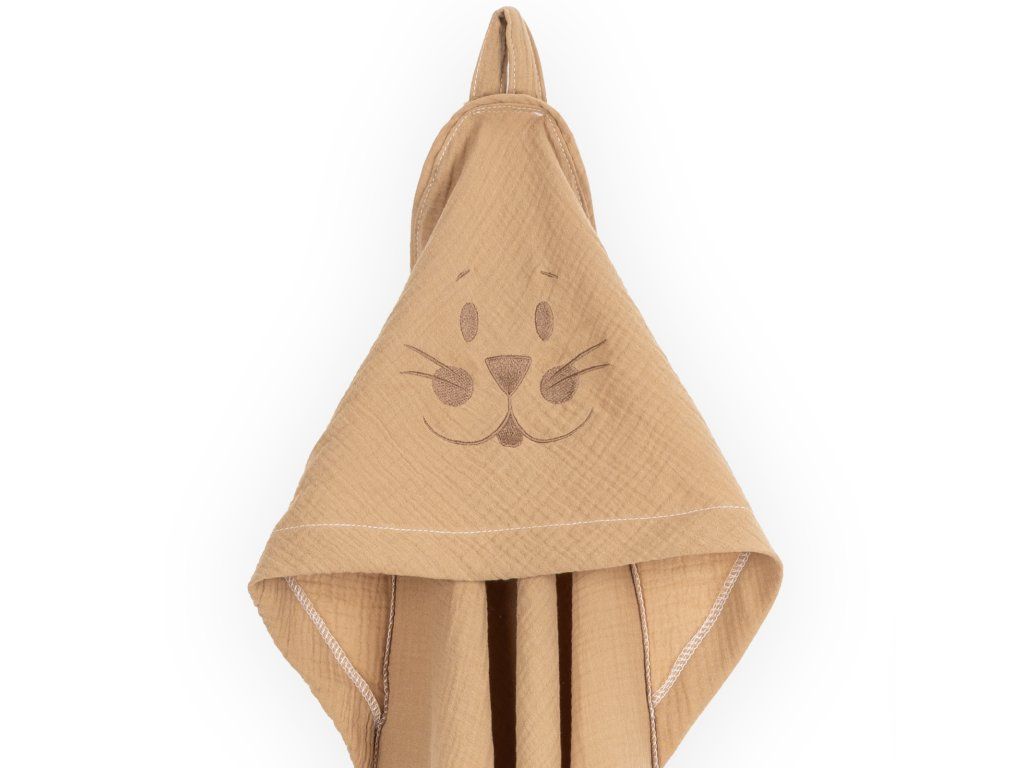 Bavlněná koupací osuška Mimoušek pro děti 0-5 let ze 100% mušelínové bavlny. Ozdobena výšivkou Bunny na kapuci.