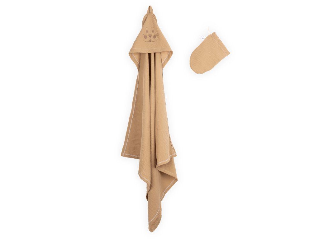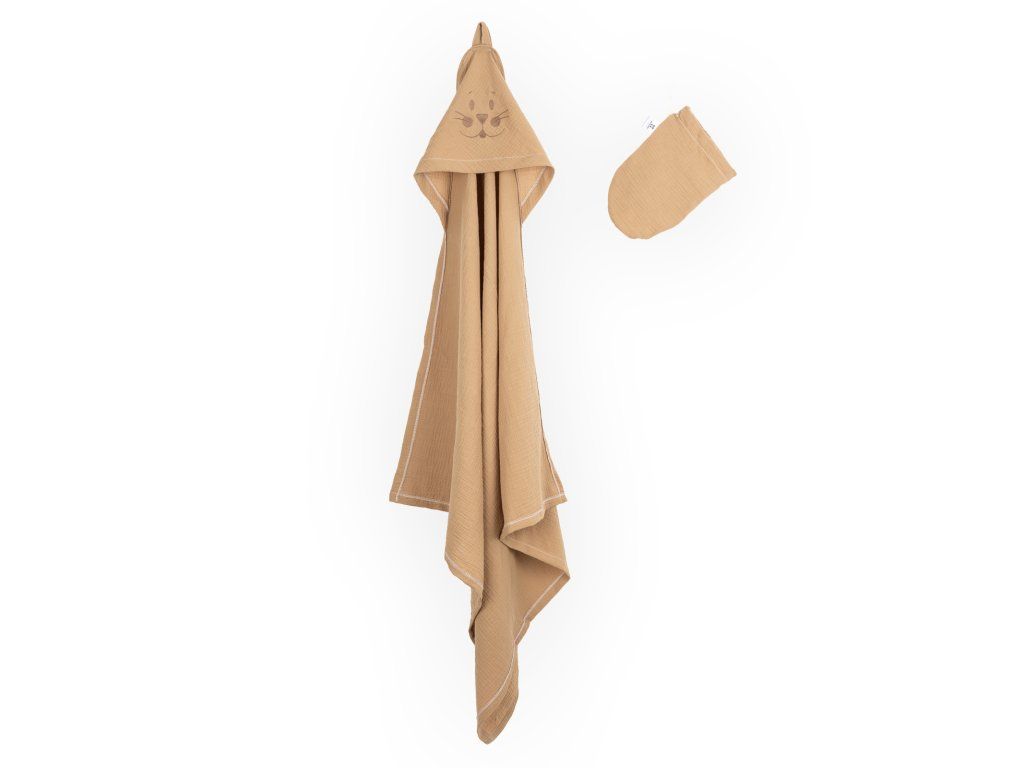 Dětská osuška s kapucí a žíněnkou karamel set