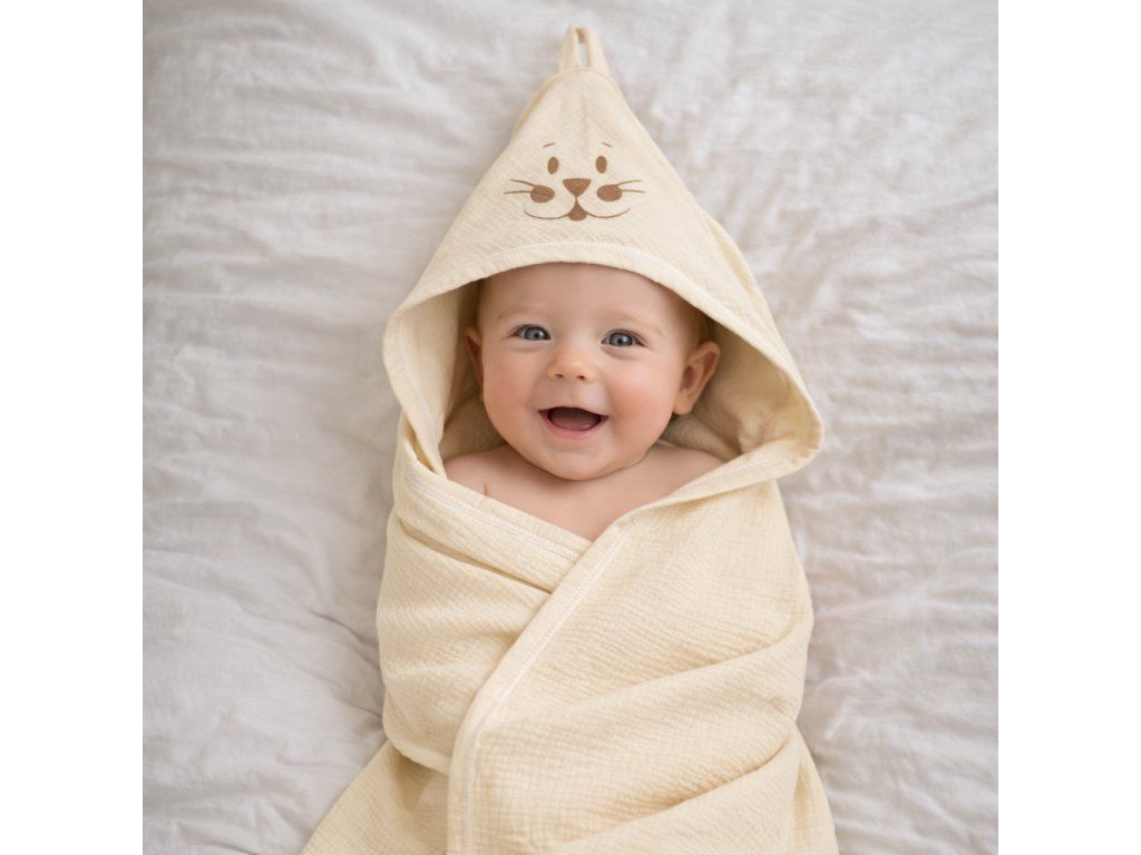 Dětská osuška s kapucí pro miminko je ideální po koupání doma, v bazénu i na dovolené. Společně s jemnou žínkou tvoří praktický set, který se hodí do výbavičky pro novorozence i malé děti.