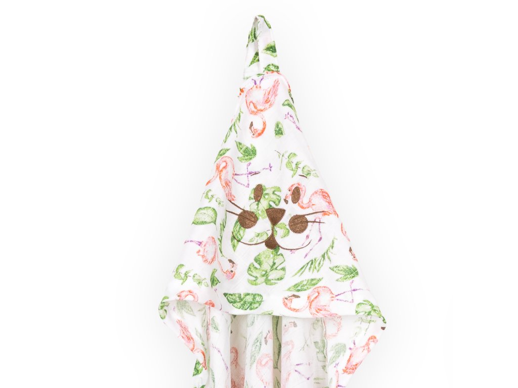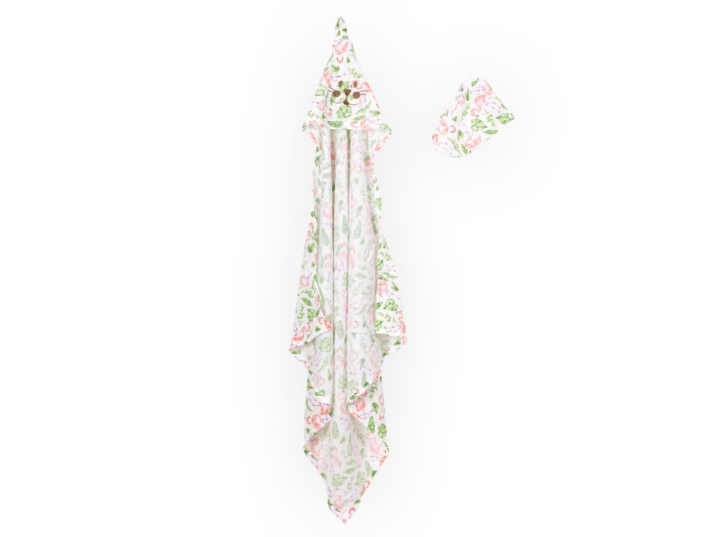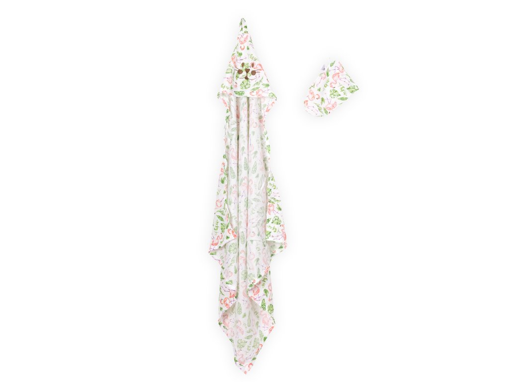 Dětská osuška s kapucí a žíněnkou plameňáci set