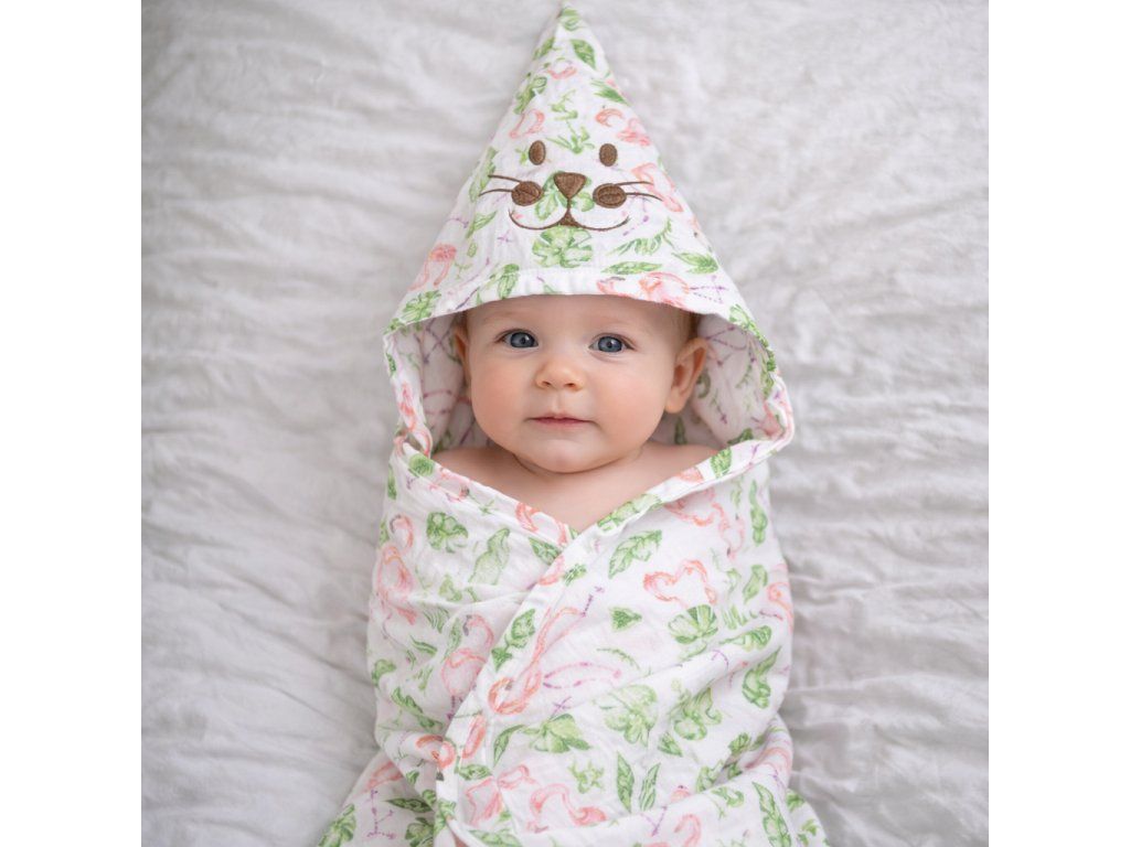 Dětská osuška s kapucí pro miminko je ideální po koupání doma, v bazénu i na dovolené. Společně s jemnou žínkou tvoří praktický set, který se hodí do výbavičky pro novorozence i malé děti.