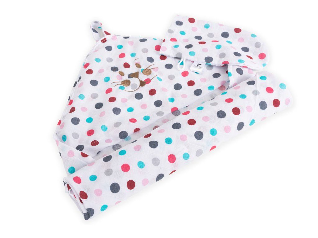 Dětská osuška s kapucí a žíněnkou puntíky set Mimoušek®
