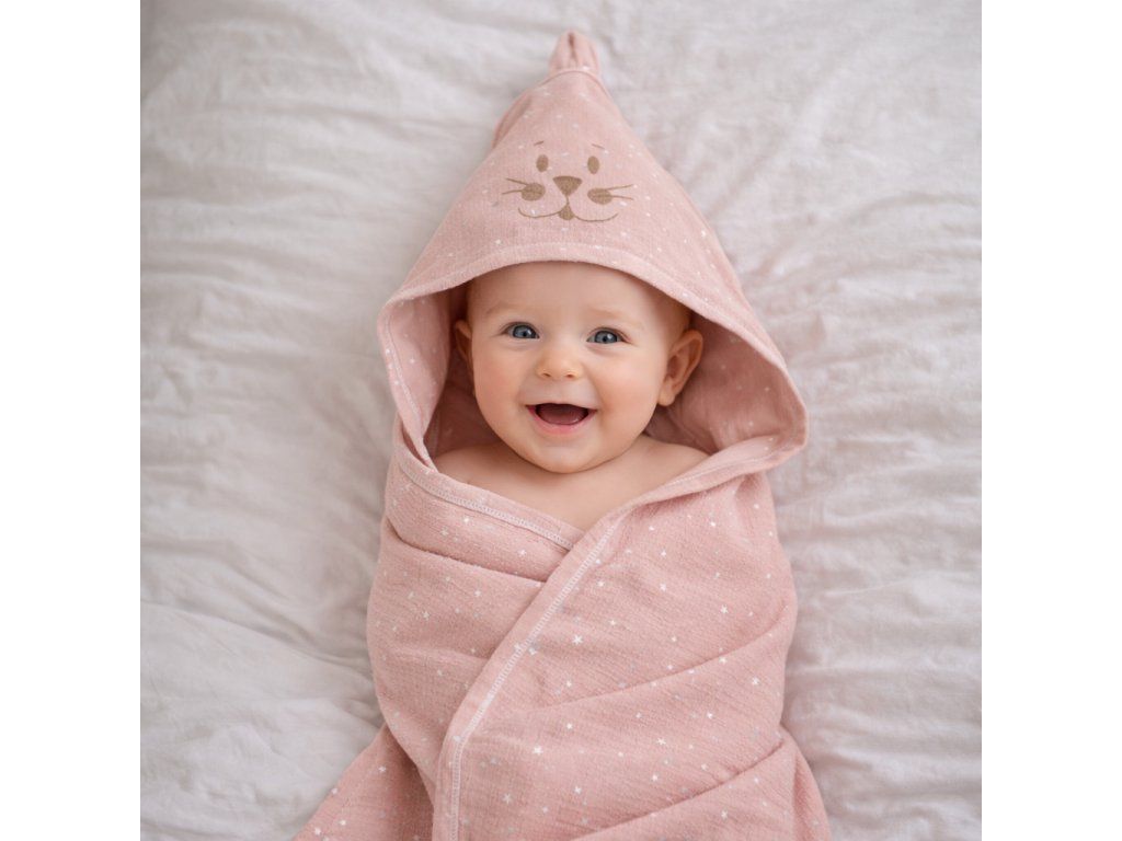 Dětská osuška s kapucí pro miminko je ideální po koupání doma, v bazénu i na dovolené. Společně s jemnou žínkou tvoří praktický set, který se hodí do výbavičky pro novorozence i malé děti.