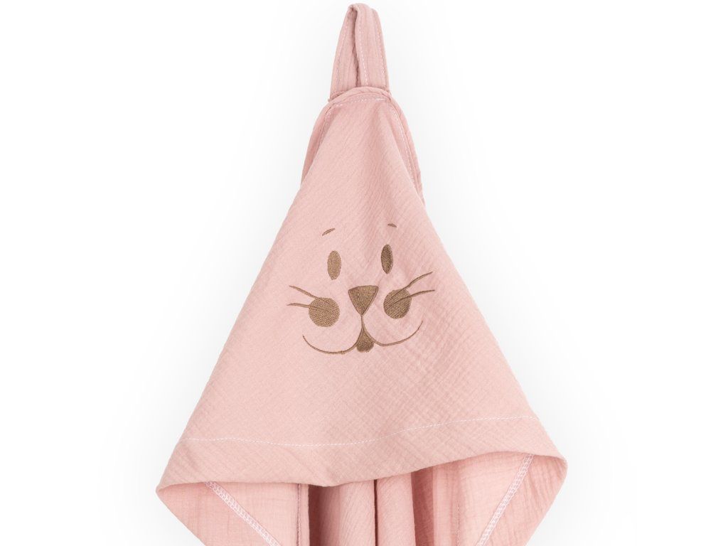 Bavlněná koupací osuška Mimoušek pro děti 0-5 let ze 100% mušelínové bavlny. Ozdobena výšivkou Bunny na kapuci.