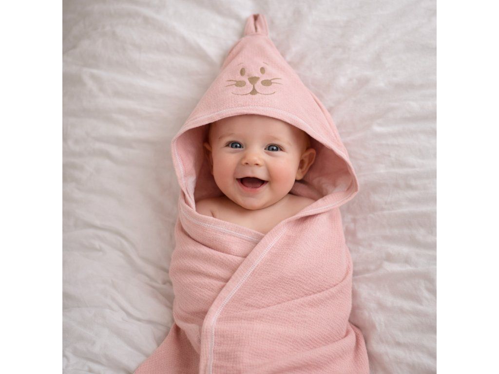 Dětská osuška s kapucí pro miminko je ideální po koupání doma, v bazénu i na dovolené. Společně s jemnou žínkou tvoří praktický set, který se hodí do výbavičky pro novorozence i malé děti.