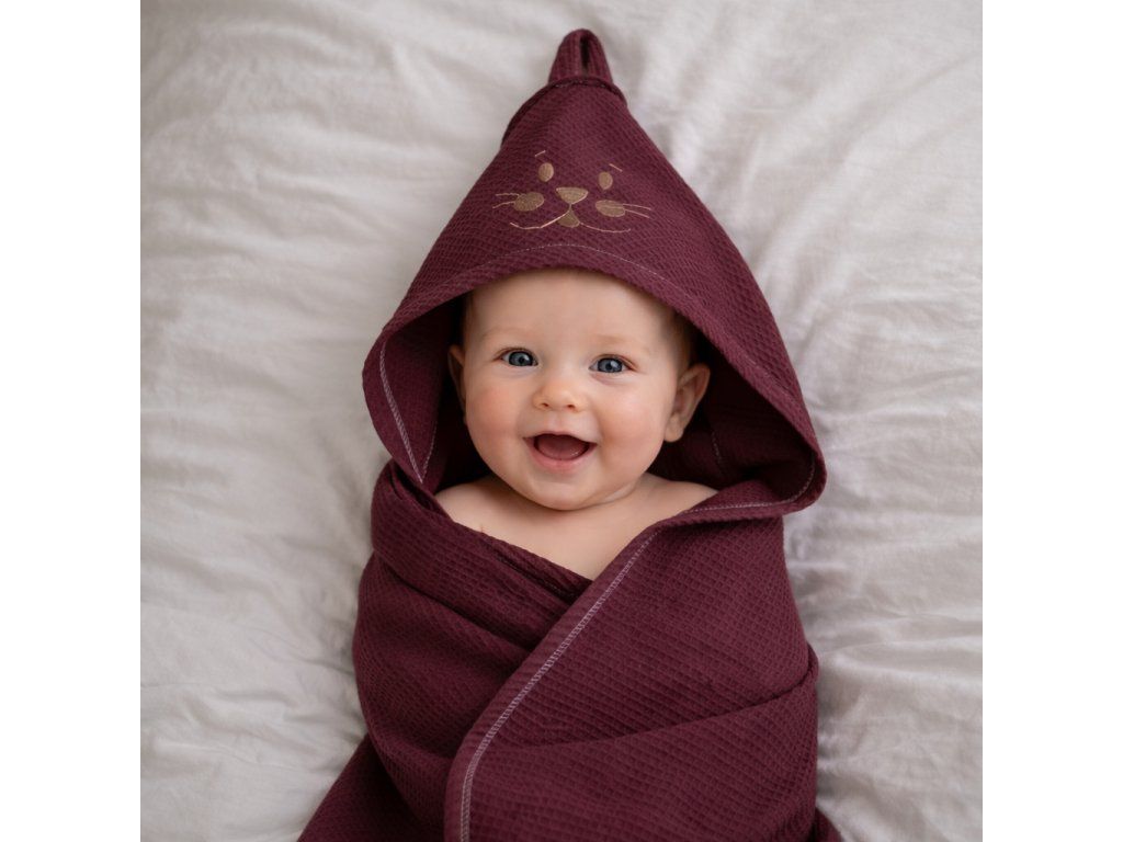 Dětská osuška s kapucí a žíněnkou vínová set