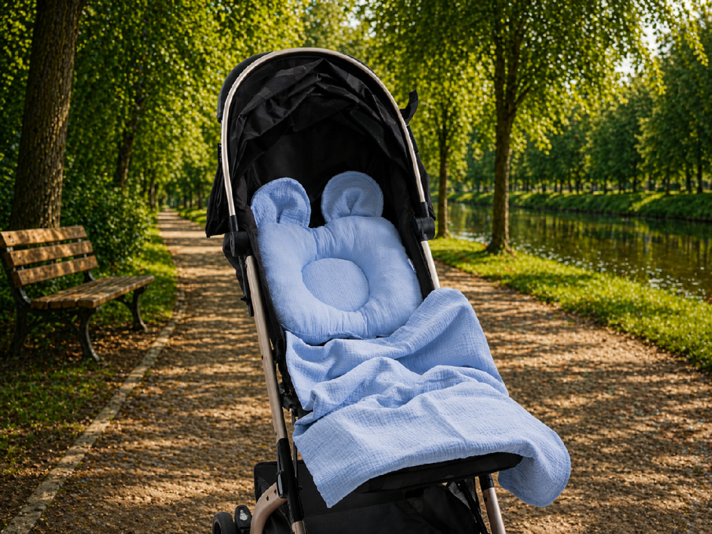 Set do kočárku z mušelínu pro pohodlí a jemnou péči o miminko