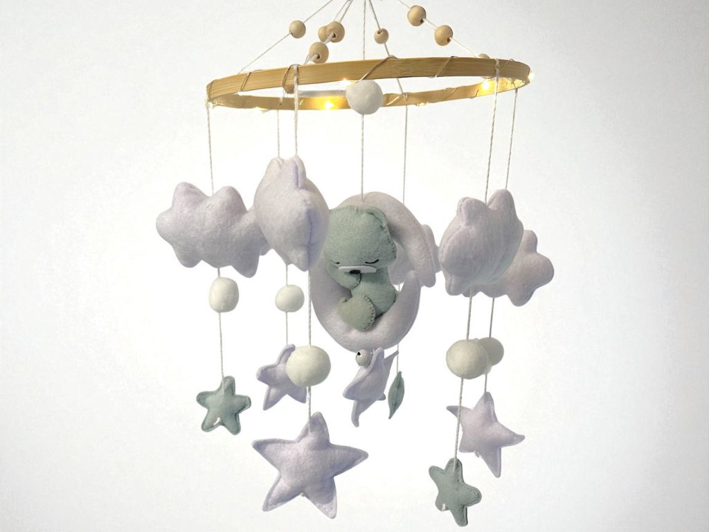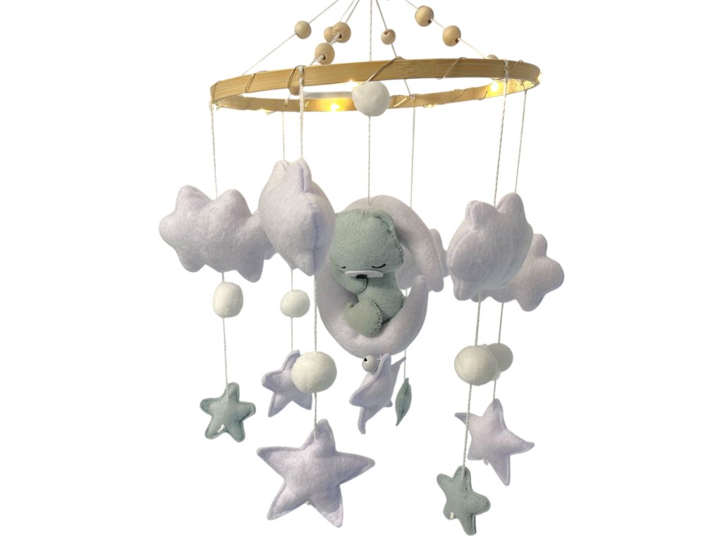 Kolotoč nad postýlku Royal Sleep méďa mint s LED