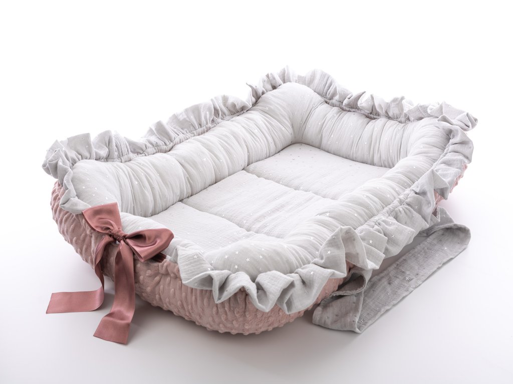 Hnízdečko pro miminko je skvělým pomocníkem každé maminky i tatínka. Vytváří miminku bezpečný, měkký a útulný prostor, který připomíná ztísněné prostředí maminčina bříška. Díky tomu se dítě cítí klidněji, snadněji usíná a má pocit jistoty. Rozměr ložné plochy je 68x35cm a celé hnízdečko 90x60cm.