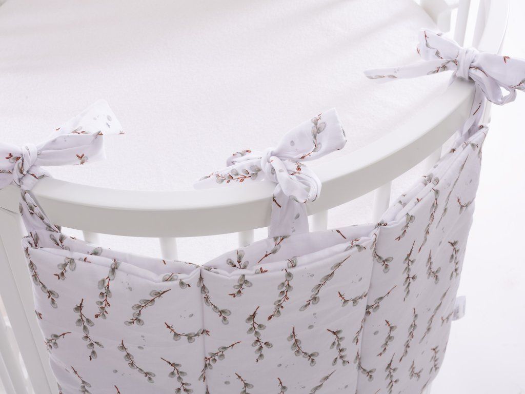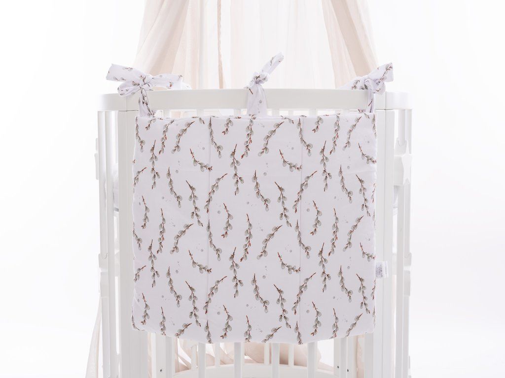Díky 3 velkým kapsám budete mít přehledně uložené plínky, ubrousky, dudlíky i další nezbytnosti. Kapsář snadno připevníte pomocí 3 bavlněných sňůrek na jakoukoliv postýlku.