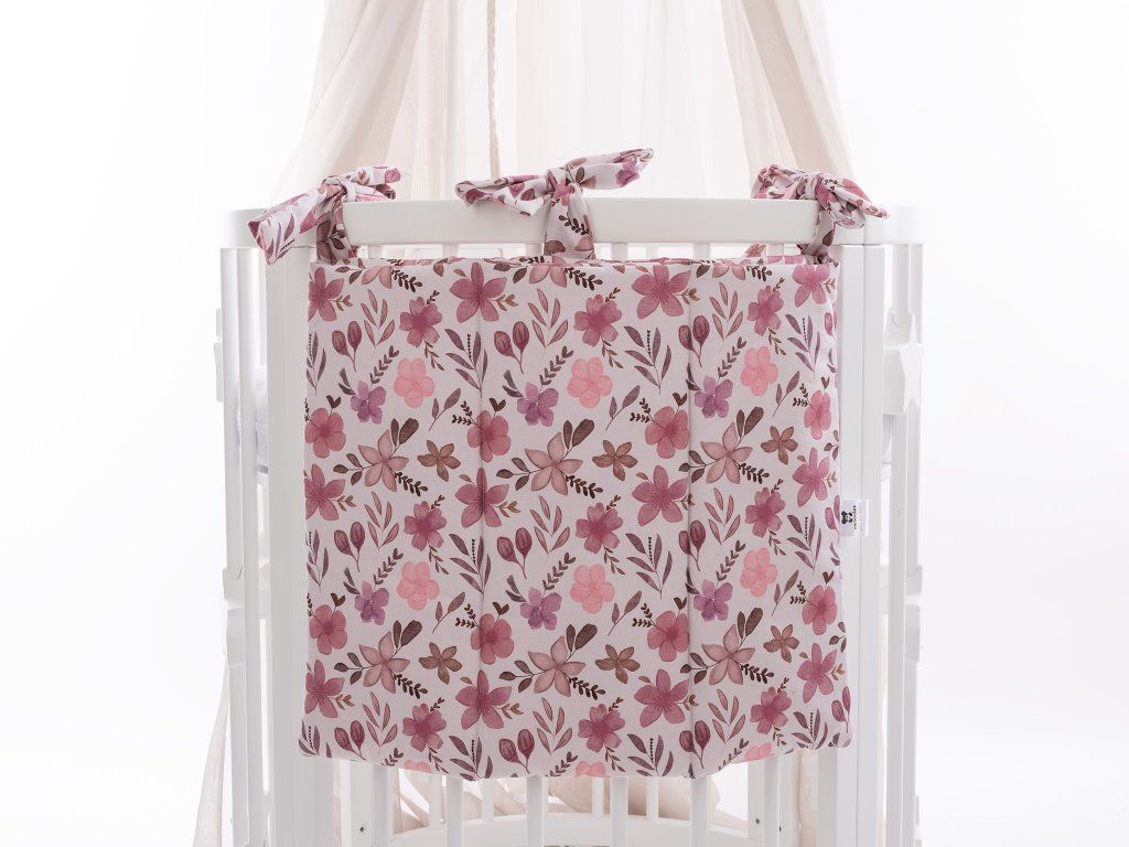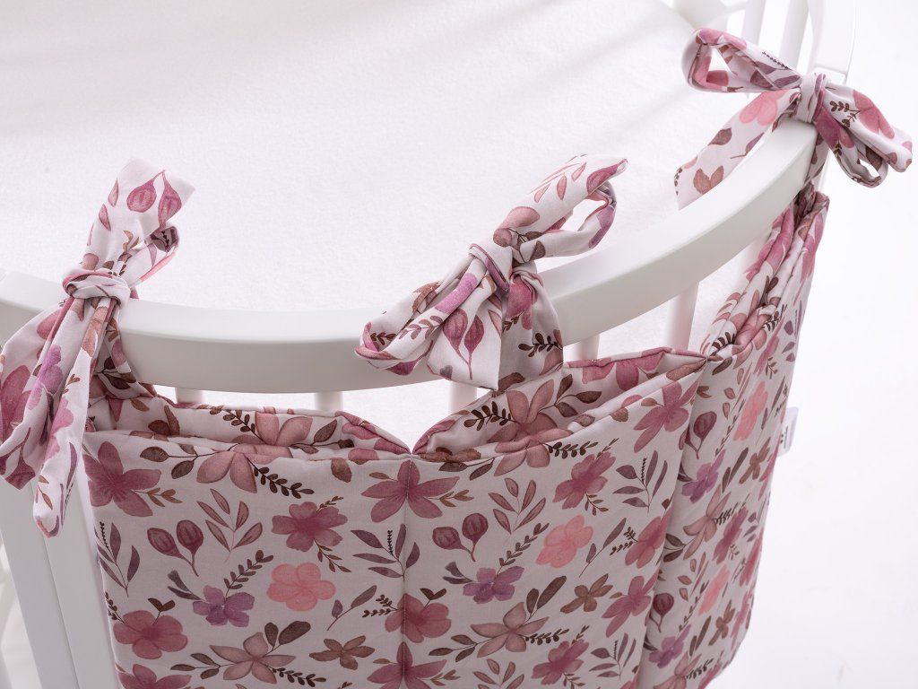 Díky 3 velkým kapsám budete mít přehledně uložené plínky, ubrousky, dudlíky i další nezbytnosti. Kapsář snadno připevníte pomocí 3 bavlněných sňůrek na jakoukoliv postýlku.