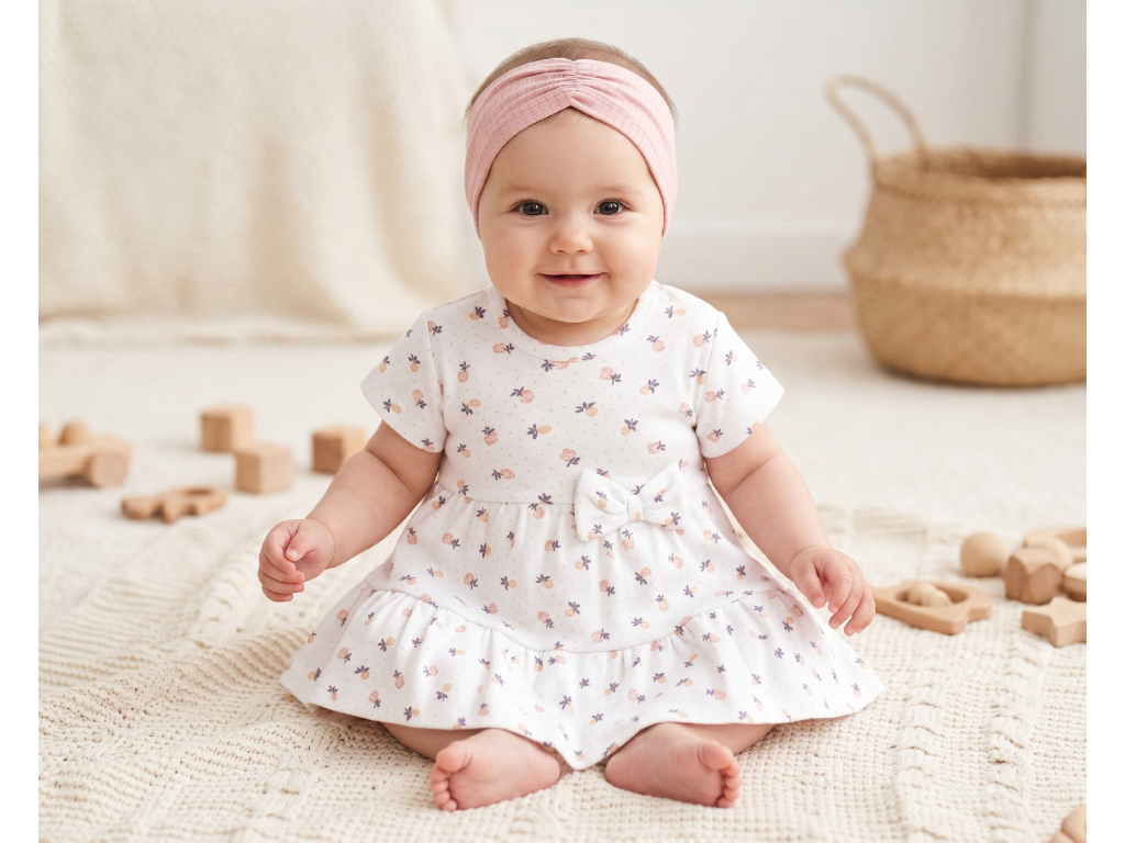Čelenka je vyrobena z žebrované bavlny s příměsí elastanu, díky čemuž je příjemná na nošení a dobře se přizpůsobí hlavičce dítěte. Širší střih zajišťuje, že čelenka pevně drží, aniž by tlačila.
