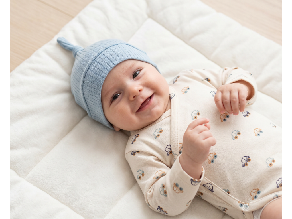 Kojenecká čepice s uzlíkem pro pohodlí a snadné přizpůsobení