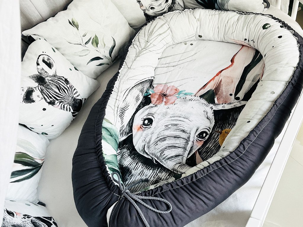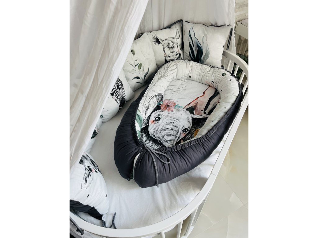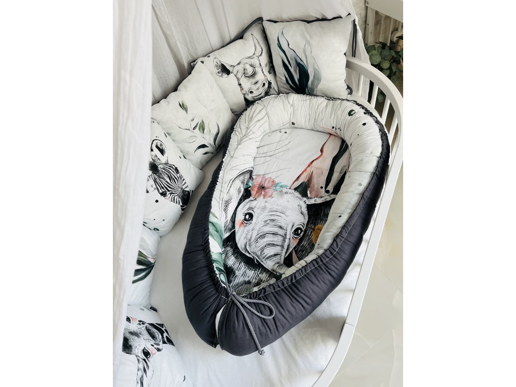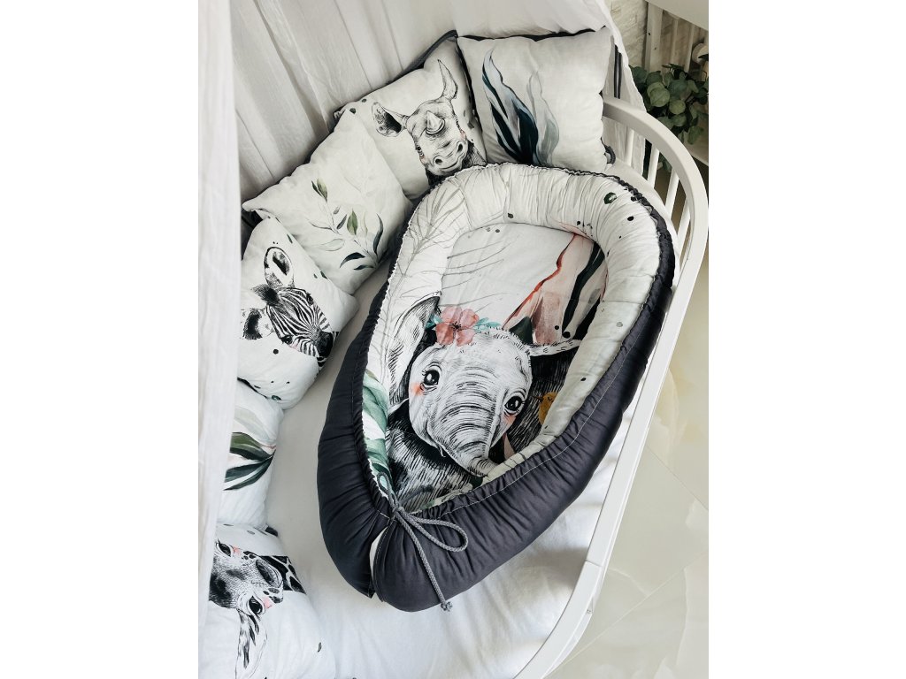 Dopřejte svému miminku pohodlí a bezpečí s tímto roztomilým 2dílným setem do postýlky s motivem safari slona. Set je navržen tak, aby poskytoval maximální komfort a zároveň esteticky ladil s dětským pokojíčkem.