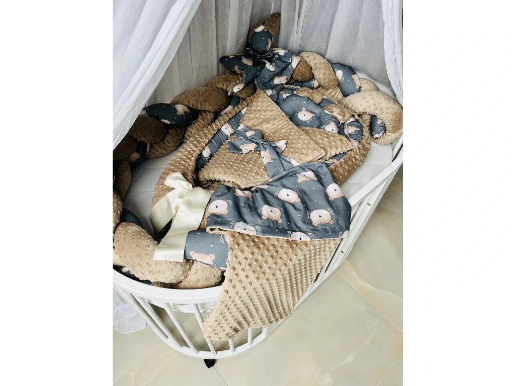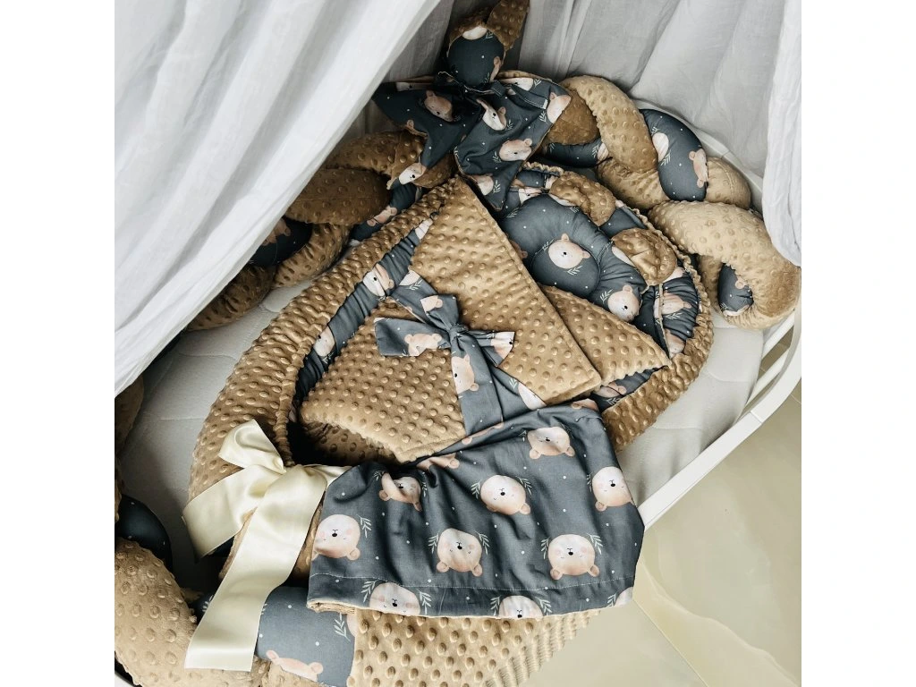 Dopřejte svému miminku klidný a bezpečný spánek s tímto luxusním 6dílným setem do postýlky s roztomilým motivem medvídka. Každý prvek je pečlivě navržen a ušit z atestovaných a zdravotně nezávadných materiálů, aby zajistil maximální komfort a bezpečí pro vaše děťátko.