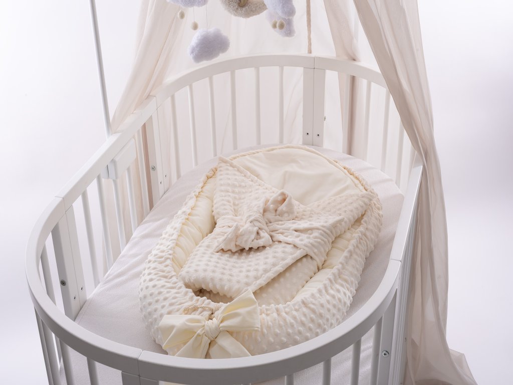 - Hnízdečko – vnitřní rozměr cca 80 × 50 cm. Vyvýšené okraje vytvářejí pocit bezpečí a pomáhají miminku klidněji usínat.