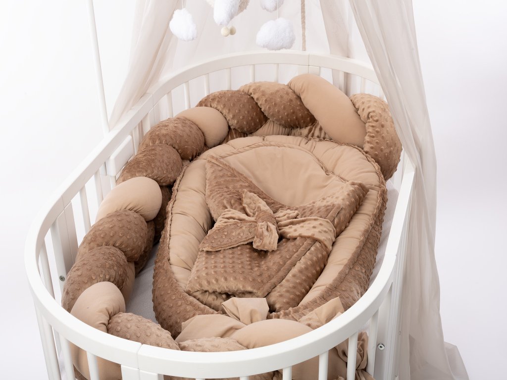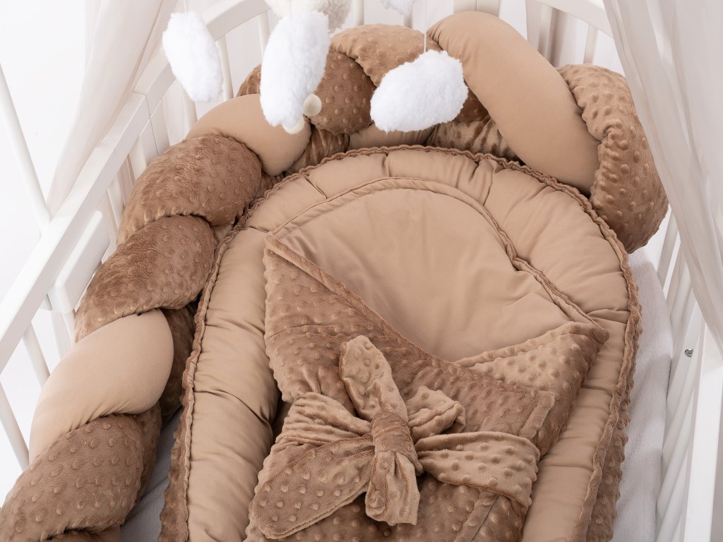 Luxusní 3-dílný set do postýlky v krásné béžové. Ručně šitý v Česku z atestovaných materiálů pro pohodlí a bezpečí vašeho miminka.